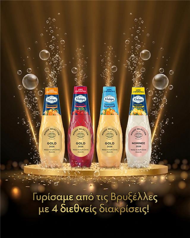 Ξεχωριστή χρονιά για την Οικογένεια Κλιάφα η φετινή, καθώς συμπληρώνει 100 χρόνια συνεχούς παρουσίας στον χώρο των αναψυκτικών και συγχρόνως επιβραβεύεται από νέες διεθνείς διακρίσεις στα Quality Awards 2026 της Monde Selection, ενός από τους πλέον καταξιωμένους θεσμούς αξιολόγησης προϊόντων παγκοσμίως.