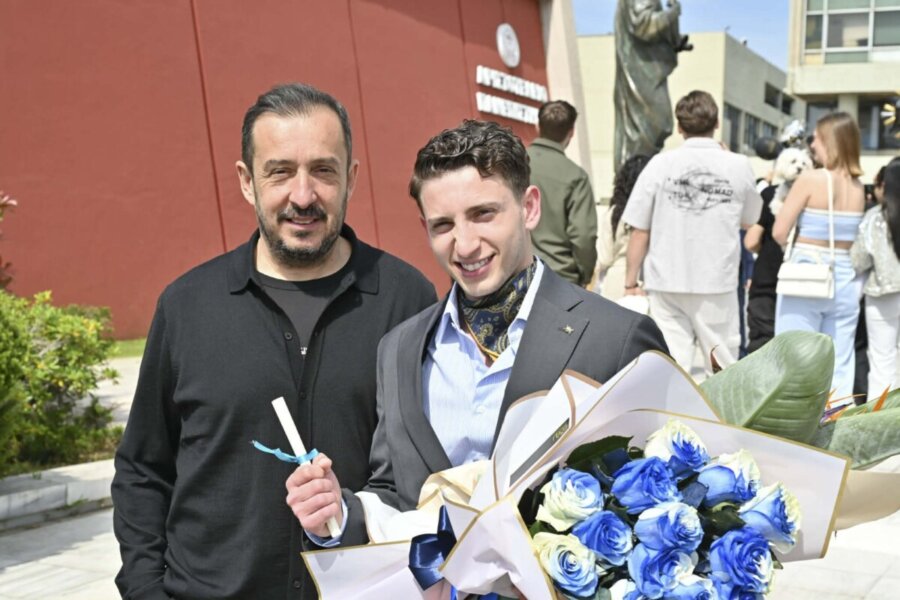 ”Συγχαρητήρια στον καλύτερο οικονομολόγο της οικογένειας! Επένδυσες χρόνο και κόπο και σήμερα ήρθε η ώρα της μεγάλης απόδοσης. Σου εύχομαι μια καριέρα γεμάτη ‘πλεονάσματα’ και μια ζωή χωρίς ‘ελλείμματα’ χαράς. “
