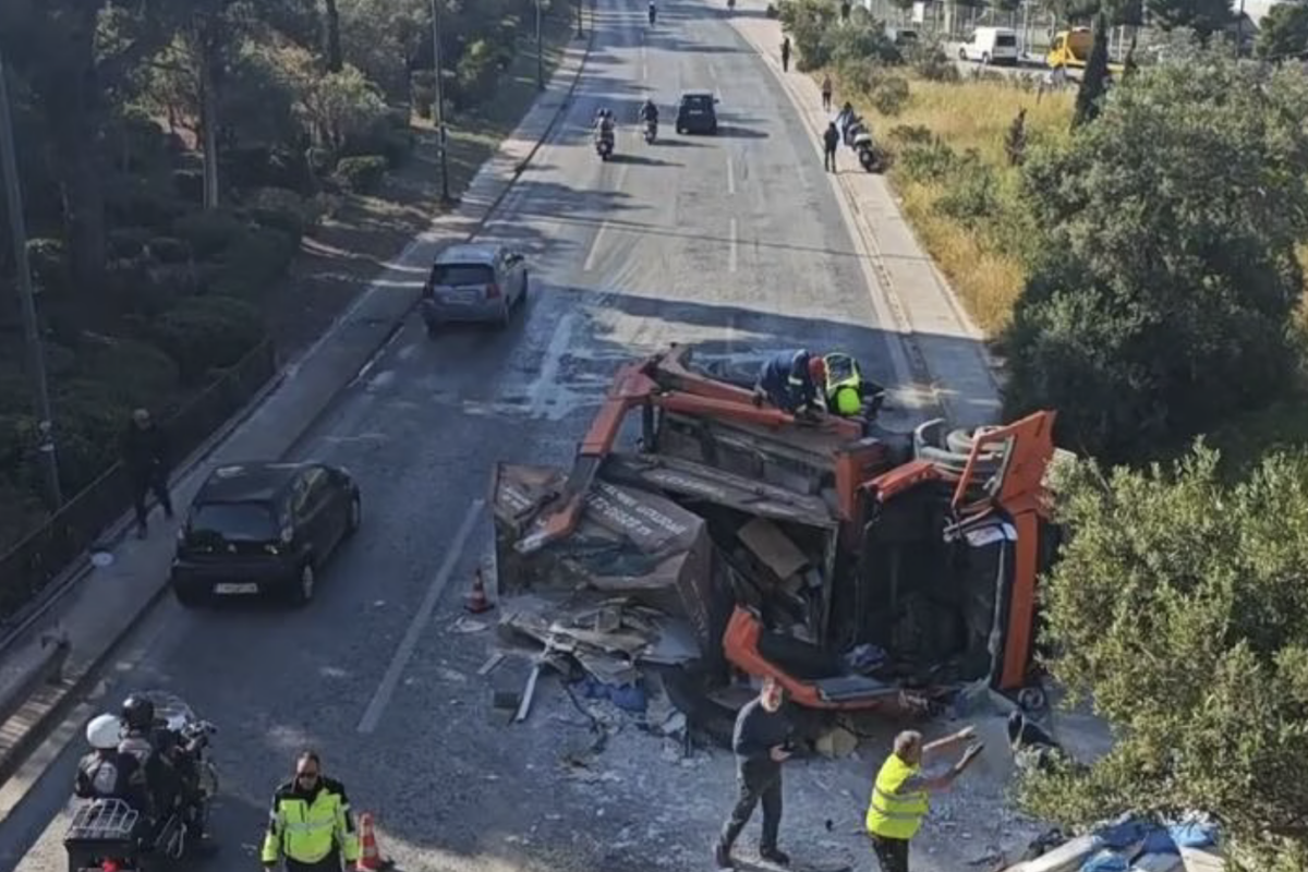 Το ατύχημα σημειώθηκε γύρω στις 8:30, στο ύψος του Ελληνικού, όταν υπό άγνωστη αιτία μετακινήθηκε το φορτίο του οχήματος (οικοδομικά υλικά, μονωτικά κ.λπ) και το φορτηγό ανετράπη και έπεσε στα πλάγια. Στο σημείο έσπευσαν πυροσβέστες οι οποίοι απεγκλώβισαν τον οδηγό ενώ η Τροχαία πραγματοποιεί ρύθμιση κυκλοφορίας. Ο οδηγός έχει ελαφρά τραύματα και διακομίστηκε στο Ασκληπιείο Βούλας.