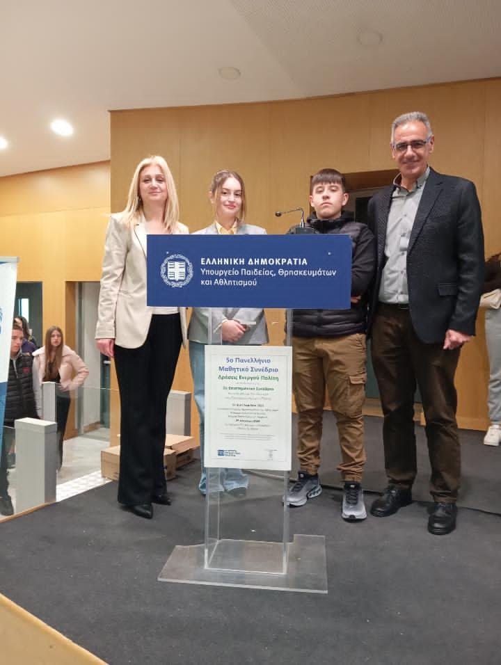 Με ιδιαίτερη επιτυχία συμμετείχε η σχολική μας κοινότητα του 8ου ΓΕΛ Τρικάλων στο 5ο Μαθητικό Συνέδριο «Δράσεις Ενεργού Πολίτη», το οποίο πραγματοποιήθηκε από τις 23 έως τις 25 Απριλίου 2026 στο Υπουργείο Παιδείας.